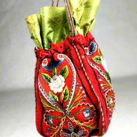 Réticule en feutre de laine brodé rouge Andrinople - France Circa 1870