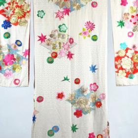 Kosode en crêpe de soie peint, imprimé et brodé d'or - Japon période Edo 18e 19e siècle