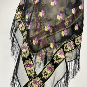 Echarpe en satin de soie liseré et ombré - Espagne Circa 1860