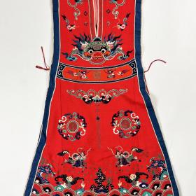 Une veste chasuble de l'Opéra de Pékin brodée sur sergé de laine rouge - Chine Circa 1900-1930
