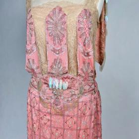 Robe de bal en Reps de soie rose brodée de sequins irisés - Rolf & Cie - Paris Circa 1920-1925