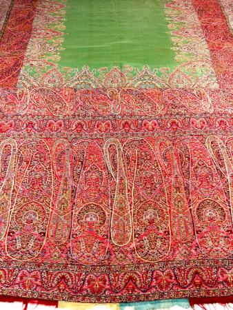 Châle Cachemire espoliné des Indes à réserve verte - Période Sick Circa 1840