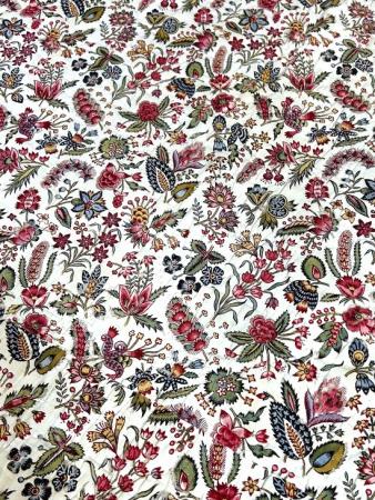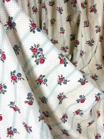 Premier d'un Grand rideau en percale de coton imprimé de roses - Fin période Louis-Philippe Circa 1850