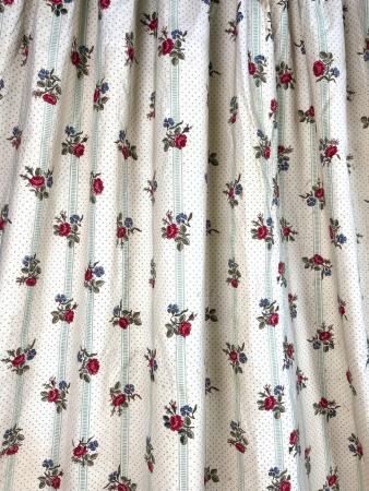 Deuxième d'un Grand rideau en percale de coton imprimé de roses - Fin période Louis-Philippe Circa 1850