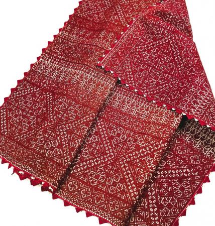 Dessus de coffre en Broderie de Fès et camaieu de rouge cochenille - Maroc Fin XIXe siècle