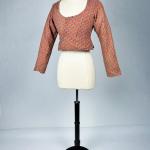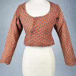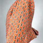 Caraco en Indienne d'Oberkampf à fond corail - Provence fin XVIIIe siècle