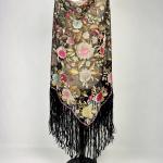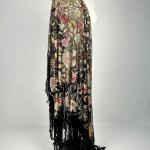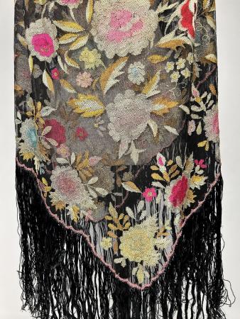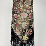 Un Châle Art Déco brodé de fleurs sur tulle noir Circa 1920