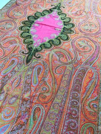 Châle Cachemire Des Indes Espoliné à réserve Fuschia - France Circa 1860