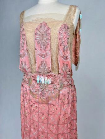Robe de bal en Reps de soie rose brodée de sequins irisés - Rolf & Cie - Paris Circa 1920-1925