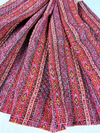 Jupe piquée en indienne rayée rouge andrinople et bleu lapis - Provence Circa 1870