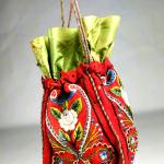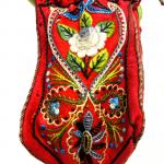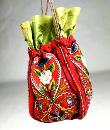 Réticule en feutre de laine brodé rouge Andrinople - France Circa 1870