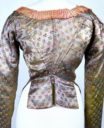 Caraco à la négligé en satin de soie liseré parme - France Circa 1785