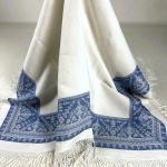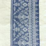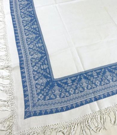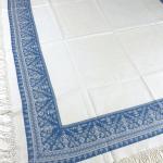 Nappe de fête damassée tissée bleu indigo en lin des Vosges - Ancienne collection Burckel Circa 1920