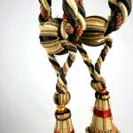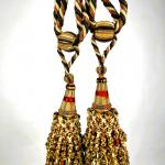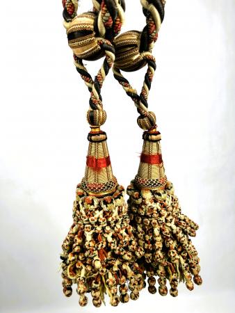 Savante Paire d'embrases en pompons de laine chinée - France Circa 1860