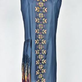 Robe du soir patriotique en crêpe de soie noire brodée - France Circa 1918-1922