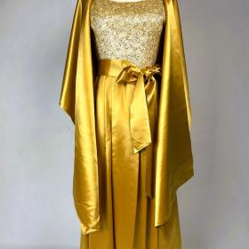 Robe bal de bal en satin or brodé de Norman Hartnell (attribué à) - Angleterre Circa 1960