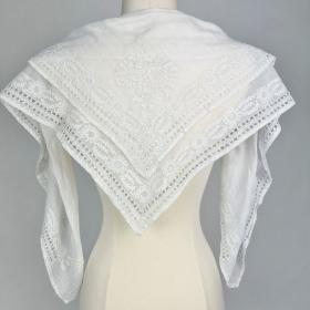 Fichu double pointe en mousseline brodée au point de Beauvais - Provence Circa 1790-1820