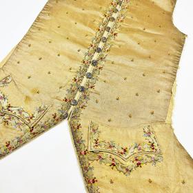 Front of a court waistcoat in gold and silver Lamé, embroidered with cannetille, glitter and sequins - France, circa 1750