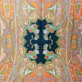 Orange Cashmere Woven Visit Shawl - France Circa 1850