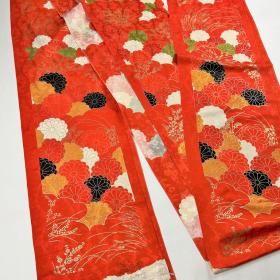 Full length of gold-printed silk damask for kimono - Japan circa 1950-1960