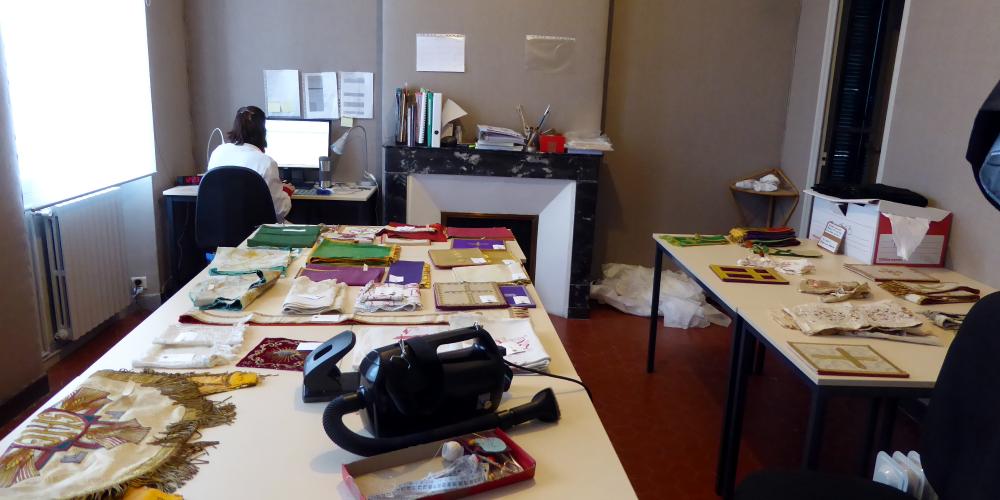 La Villa Rosemaine remporte en 2012 un important chantier de conservation-restauration pour le traitement de sept-cent cinquante-sept ornements liturgiques issus de la cathédrale Saint Lazare d’Autun.