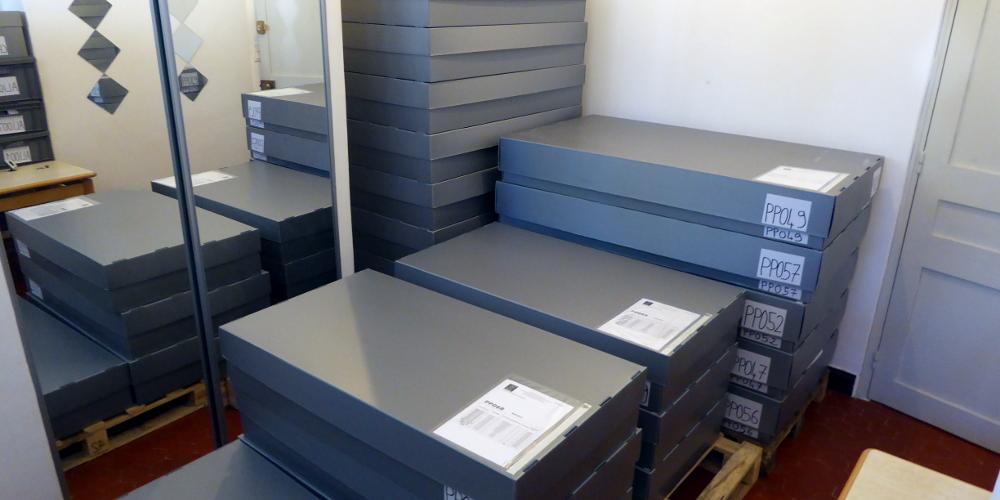 La gestion et l’organisation des lieux de stockage : La gestion de nombre d’objets et l’aménagement des conditionnements sont étudiés en vue du stockage et du transport en réserves. La logique adoptée pour ce chantier est d’assurer la meilleure accessibilité possible au regard de la contrainte de place limitée qui pèse sur les espaces de la nouvelle réserve.